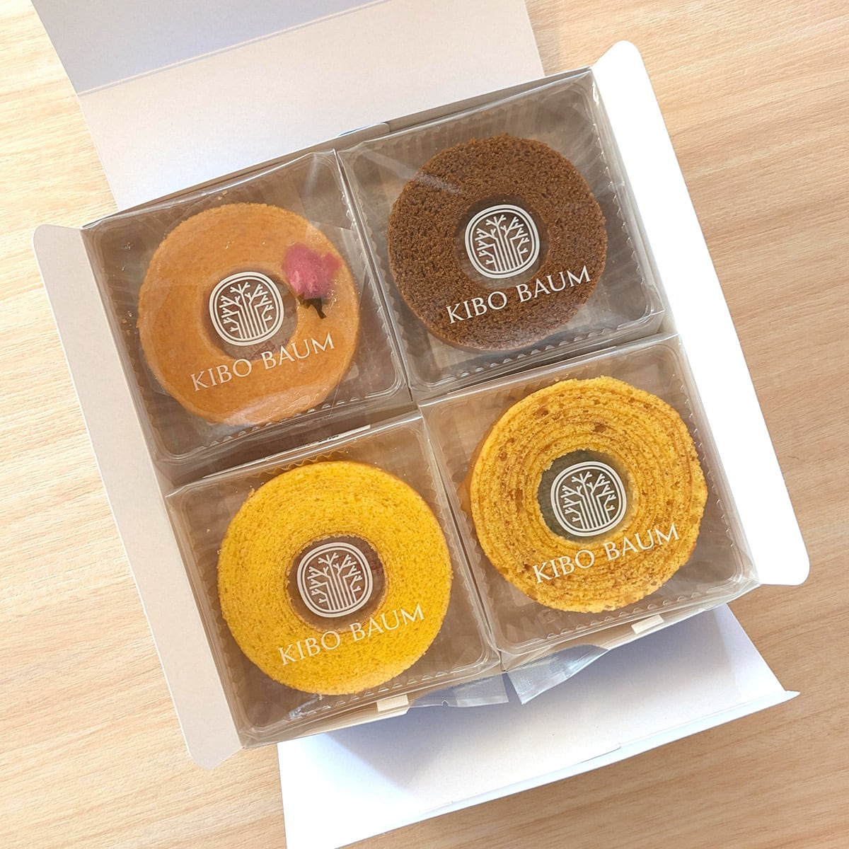 KIBO BAUM4種(人気の玄米とプレーン、さくらプリンス、チョコ)の全種類入ったセットです。